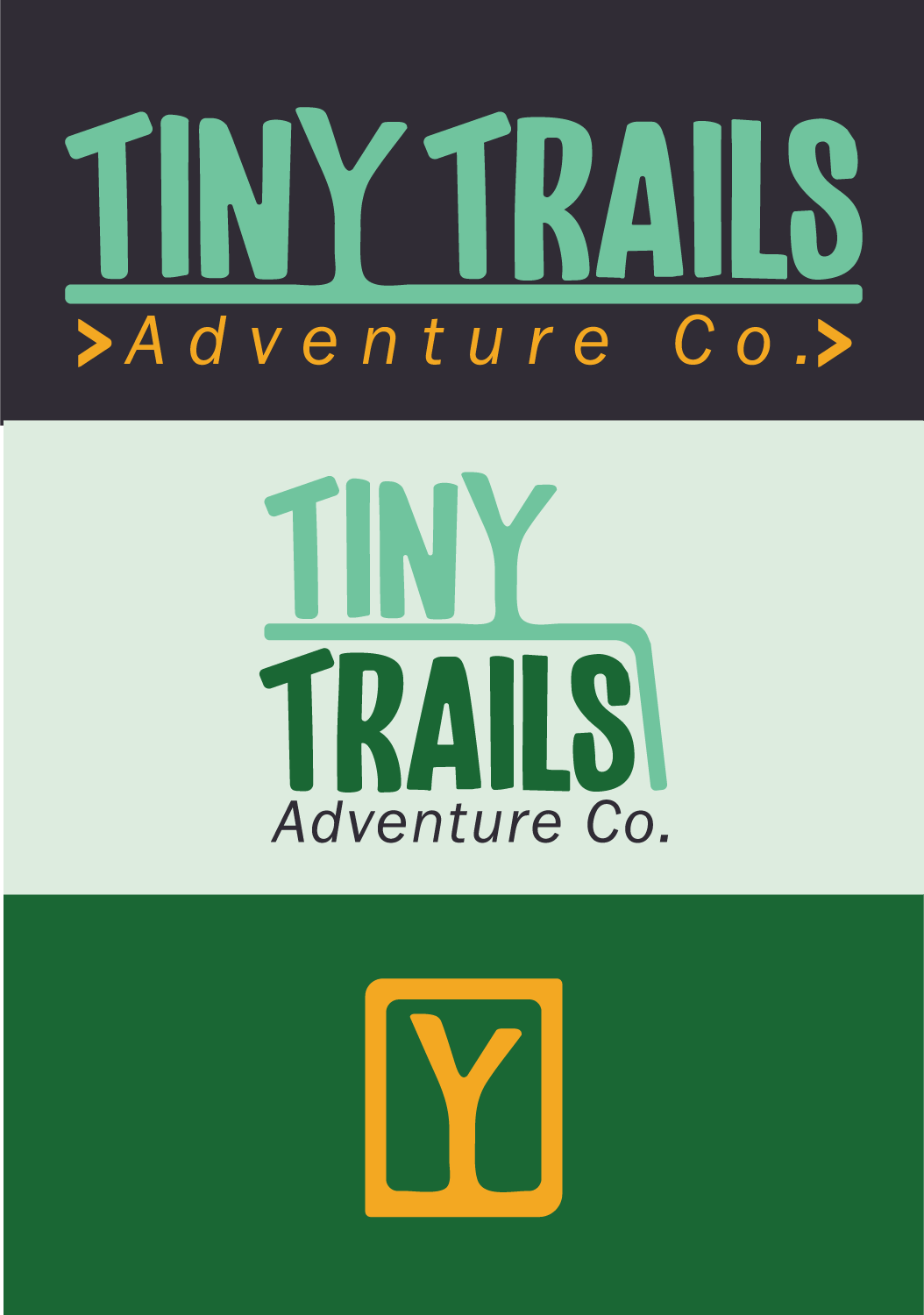 The main logo represents the full brand identity, combining playful typography with natural elements to capture the essence of Tiny Trails.